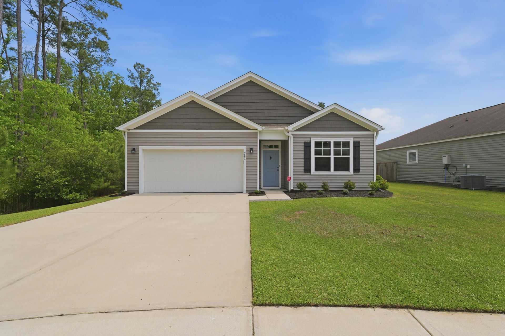 Location and Relaxation. This home is located in Desirable Spring Grove Plantation. Easy access to Joint Base Charleston or Commute to Work.This home is move in ready with a beautiful kitchen with an upgraded Gas Range and shelved pantry for the chef. The open concept living/ Dining is great to stay connected around a meal. There is a nice Ship lap accent wall in the dining portion. The large Primary is on the rear and features a Walk in closet with a useful closet organizer. In the rear is a fully screened porch with a fully fenced yard. The Deck is a perfect spot to sit or plant. The utility shed in the back will offer added storage. The garage floor has an epoxy finish and overhead shelves will convey. Schedule a showing soon. New Construction won't have these features.
